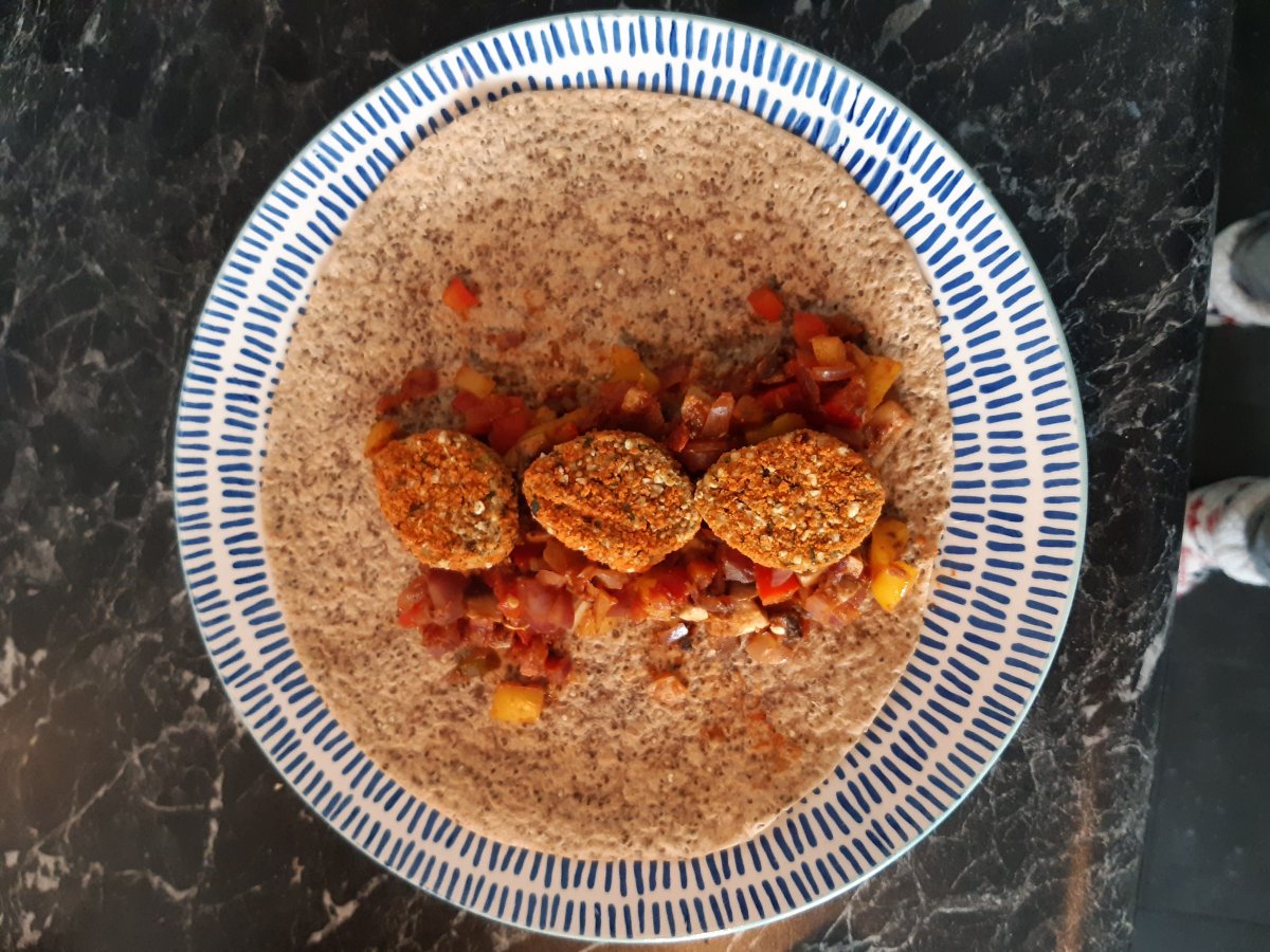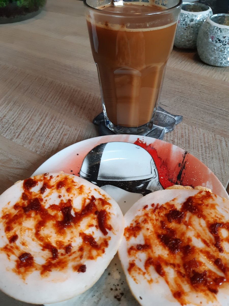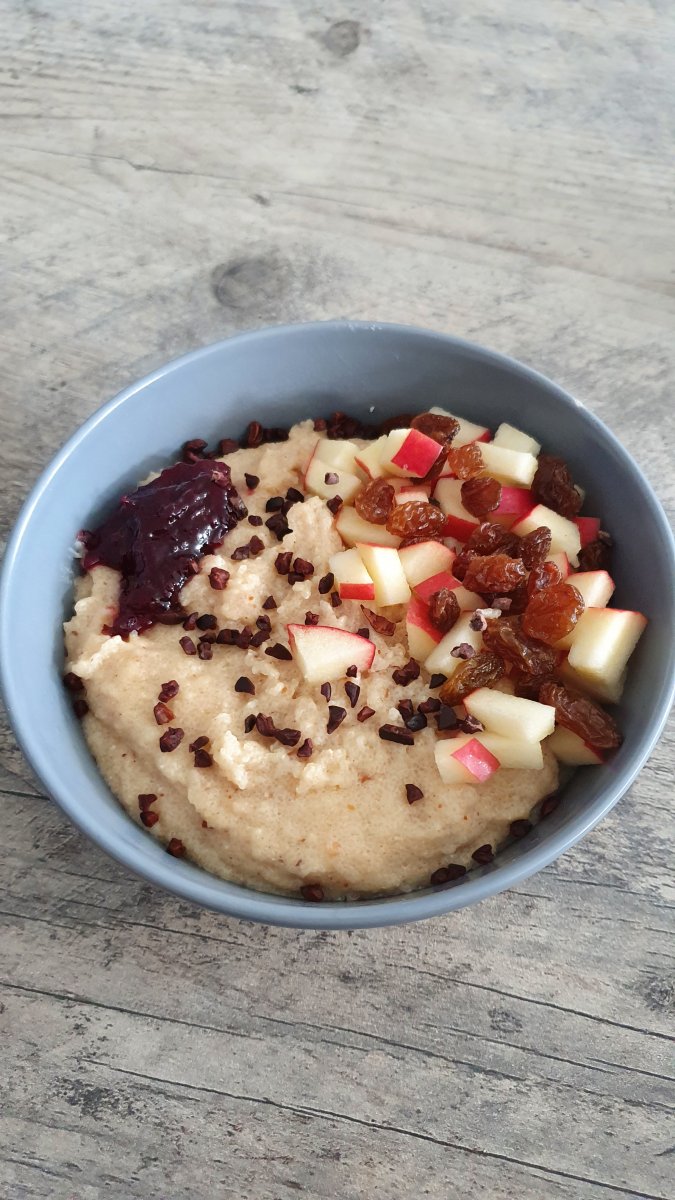 Daarna appel, rozijn, cacao nibs en een klein beetje fruit spread van XXL![]()