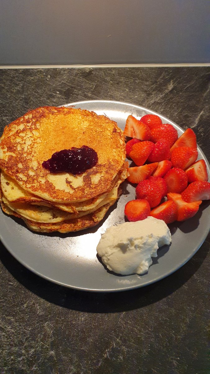 Griesmeelpannenkoeken met aardbei, skyr yoghurt en XXL Fruit Spread