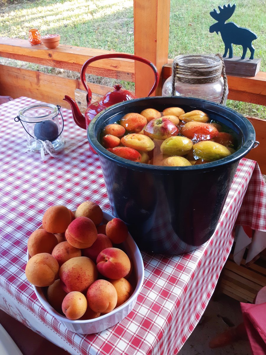 Lekker! Jam koken? Compote maken?Ik eet voorlopig alleen nog maar abrikozen (+1 appel) als maaltijd denk ik. En de toppen van de boven hangen nog vol