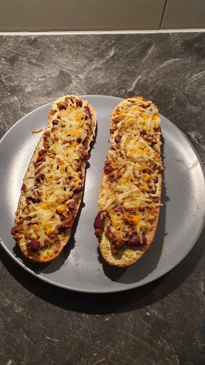 Onder deze laag tejföl en kaas zit een 2 kipfilets, gepaneerd in een laag aardappelrosti. Daaronder weer rijst.