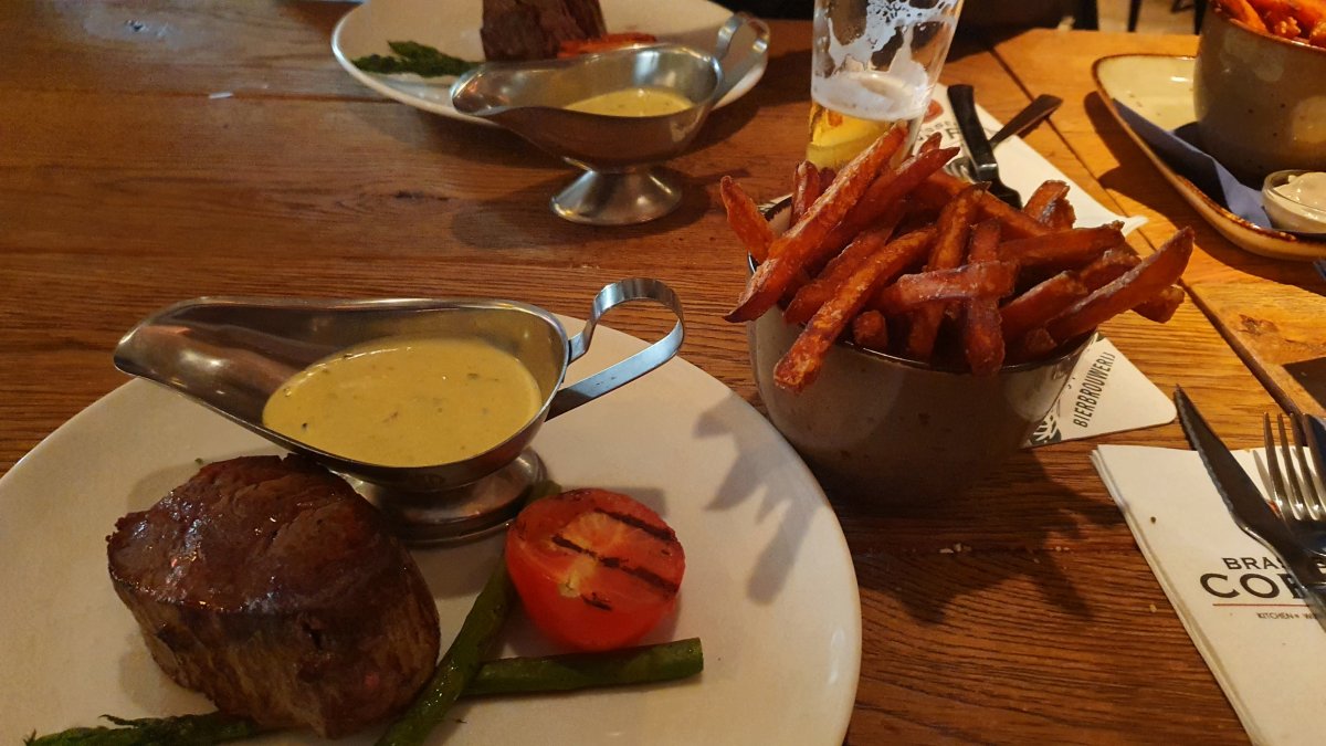 Jij had toch 1500 kcals ''speling'' voor dit diner?Gisteravond een etentje met collega's. Vooraf een pita pulled chicken en als hoofdgerecht een tournedos van 200gr met asperges en zoete aardappel friet.