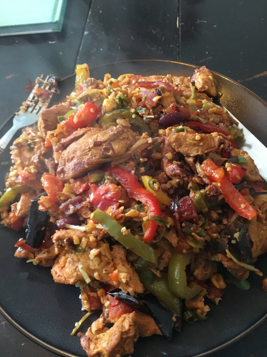 Nu was het geprept, want ben niet thuis. Rijst kip groenten en wat gehaktballetjes gekruid en met tomatensausIn de cut zagen de maaltijden er nog fatsoenlijk uit BB, wordt naarmate de kcal stijgen erger lijkt wel!