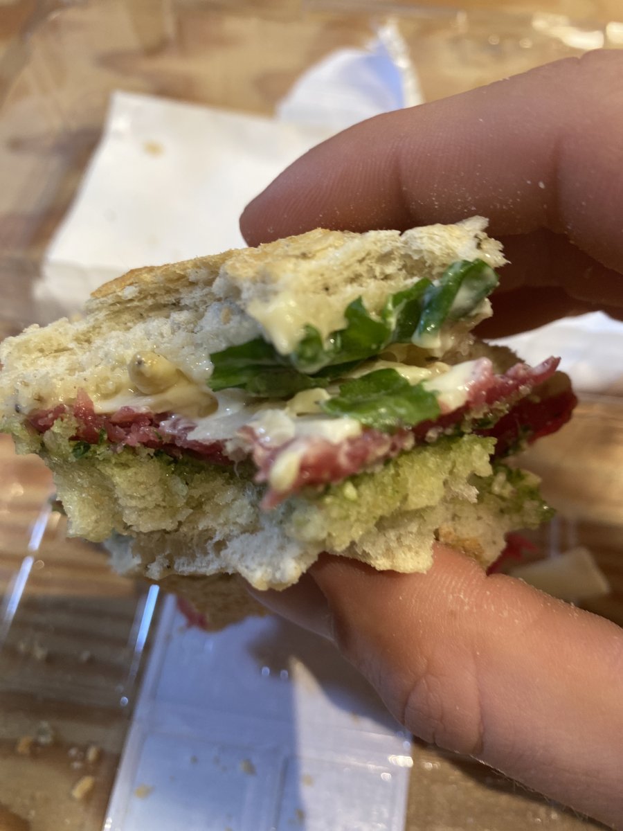Ziet er gewoon goed te eten uit, eventueel boterhammen schuin doorsnijden en om het eten heen leggen.
