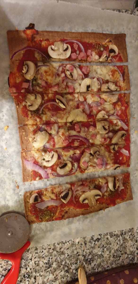 Wat is dat gele?Foto kwartslag draaien, dan lijkt de pizza dikker .Hey das toevallig, dit gaat ik nu naar binnen werken![]()
