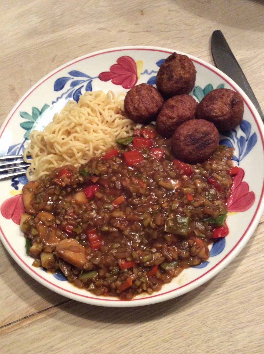 winterkostje hmm!!Lui kookdagje, noodles, veel groente en Vega balletjes.