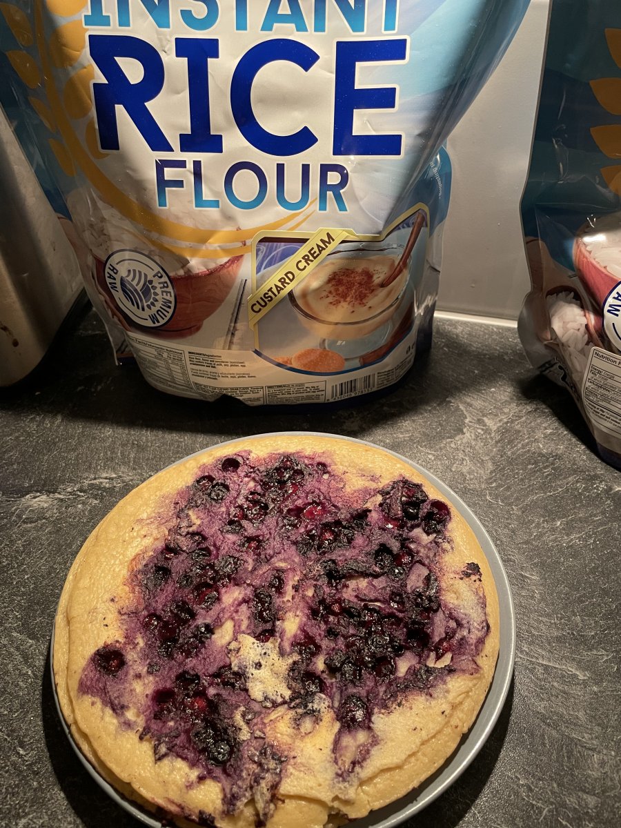 XXL Delicious pancake mix + 50gr ricepowder custard cream smaak en blauwe bessen.