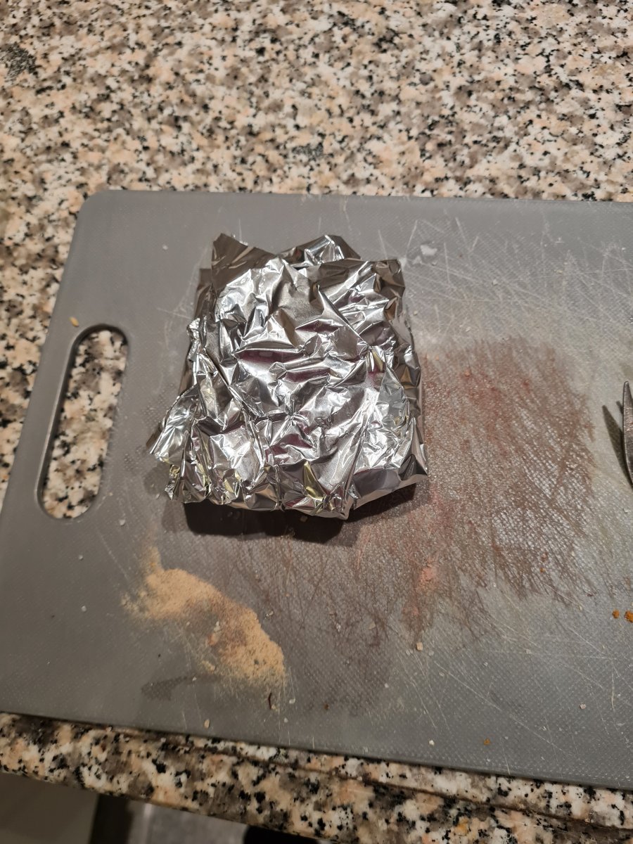 Zo is goed. Je doet het om em te laten rusten. Dan verdelen de sappen zich weer en loopt je stuk vlees niet meteen leeg als je het aansijdt.Veel gelezen dat je biefstuk nog even 5 minuten na het bakken in alufolie moet verpakken om hem door te laten garen. Hoe doen jullie dit? Gewoon simpelweg hoekies naar elkaar en verpakken?