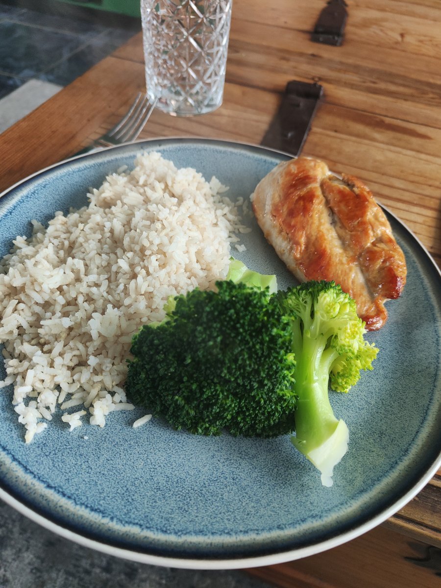 Dat gaat mij niet lukken. Ja die rijst wel maar groenten nietVleesbeleg kipfilet.