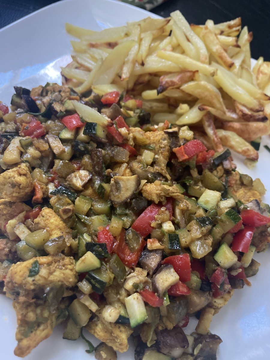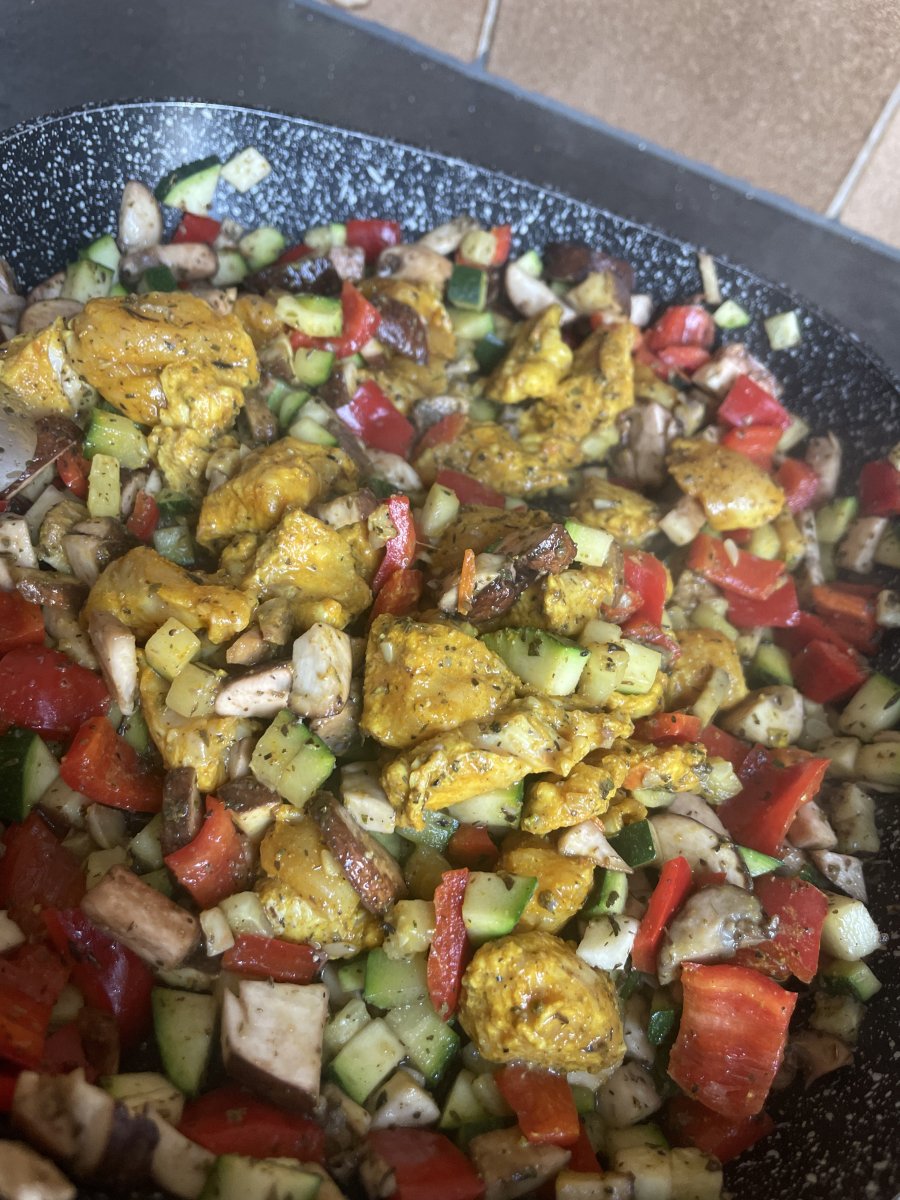 Als het smaakt zoals het eruit ziet...Sweet Chili saus , rijst , prei, rode ui , knoflook en paprika! 🍽️![]()