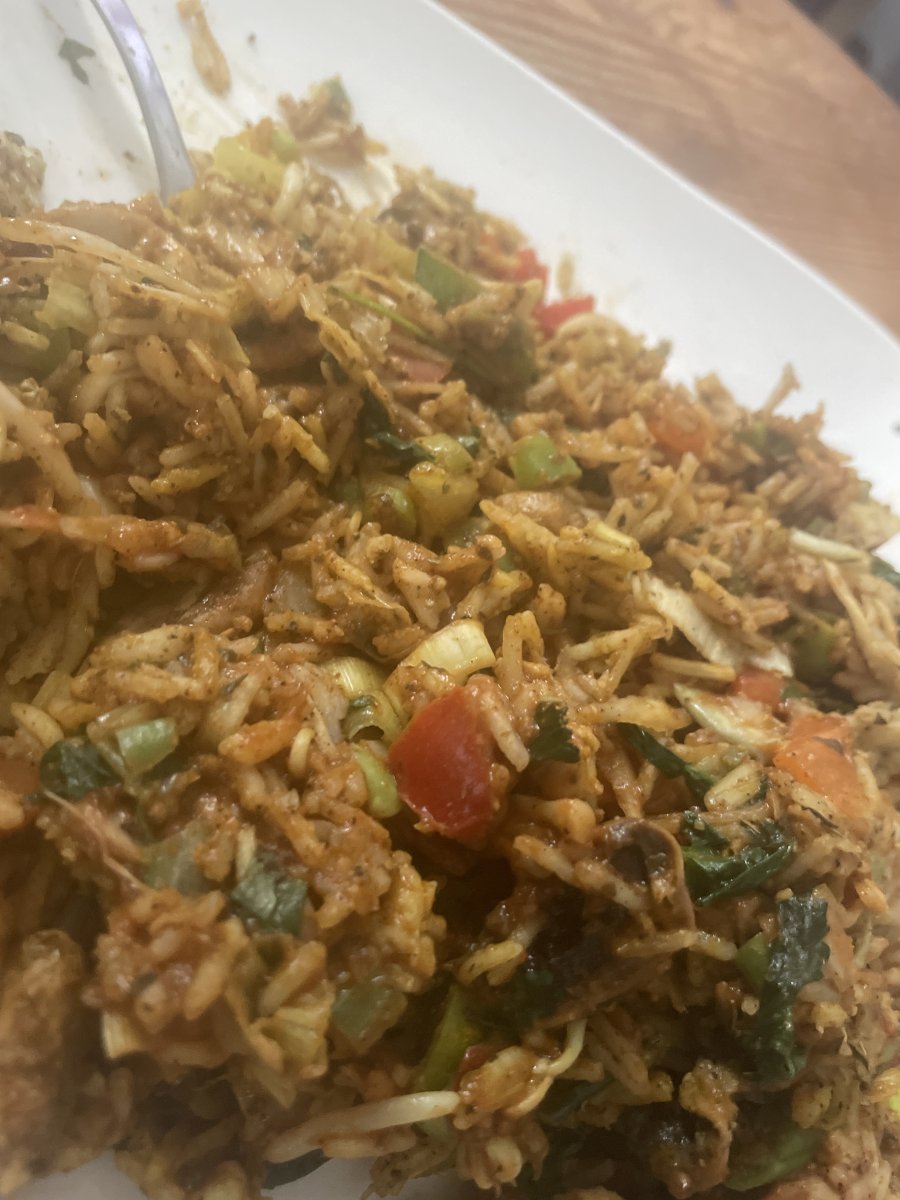 Eieren, kool, tomaatjes, kruiden, kip uit airfryer.