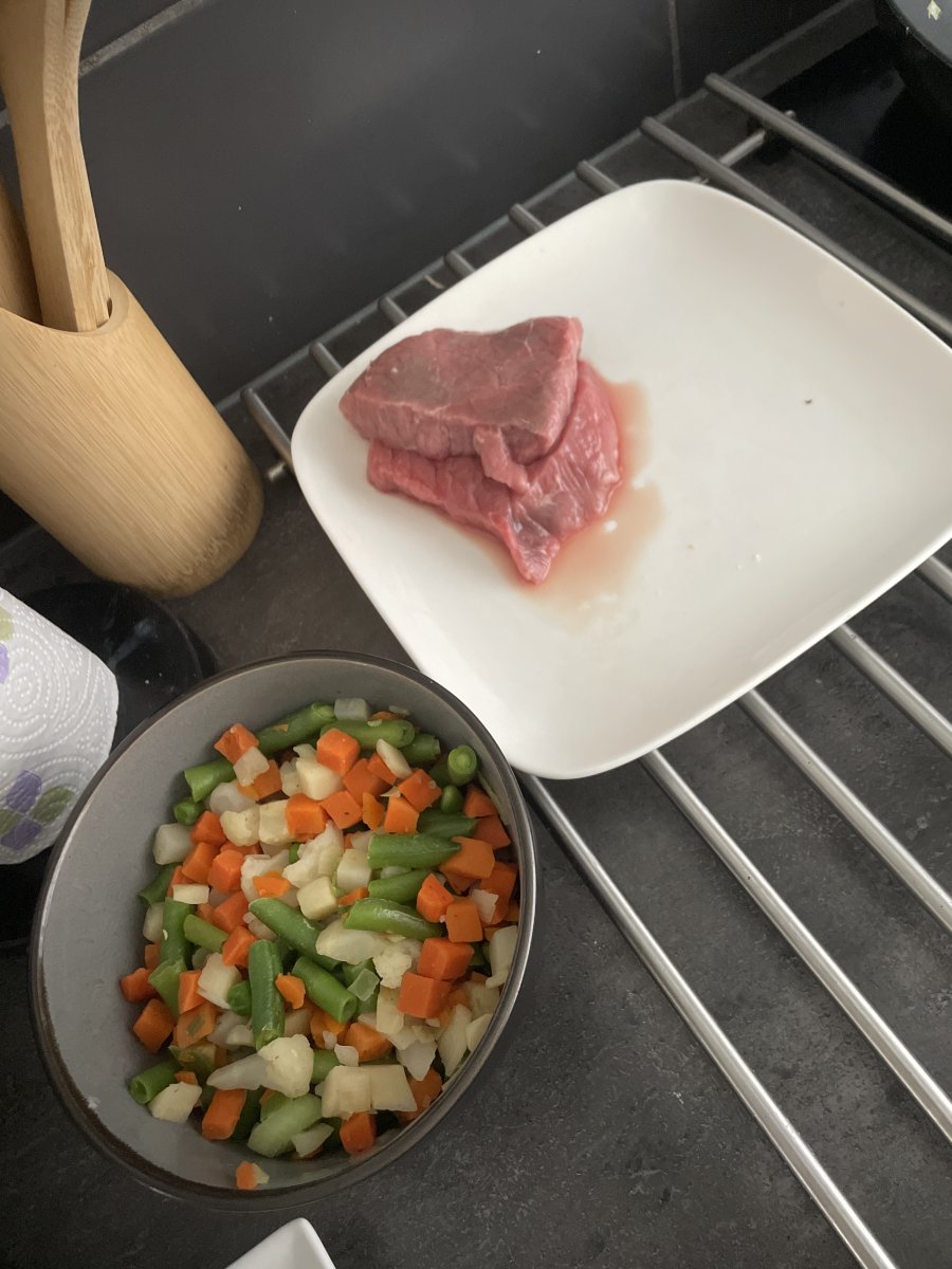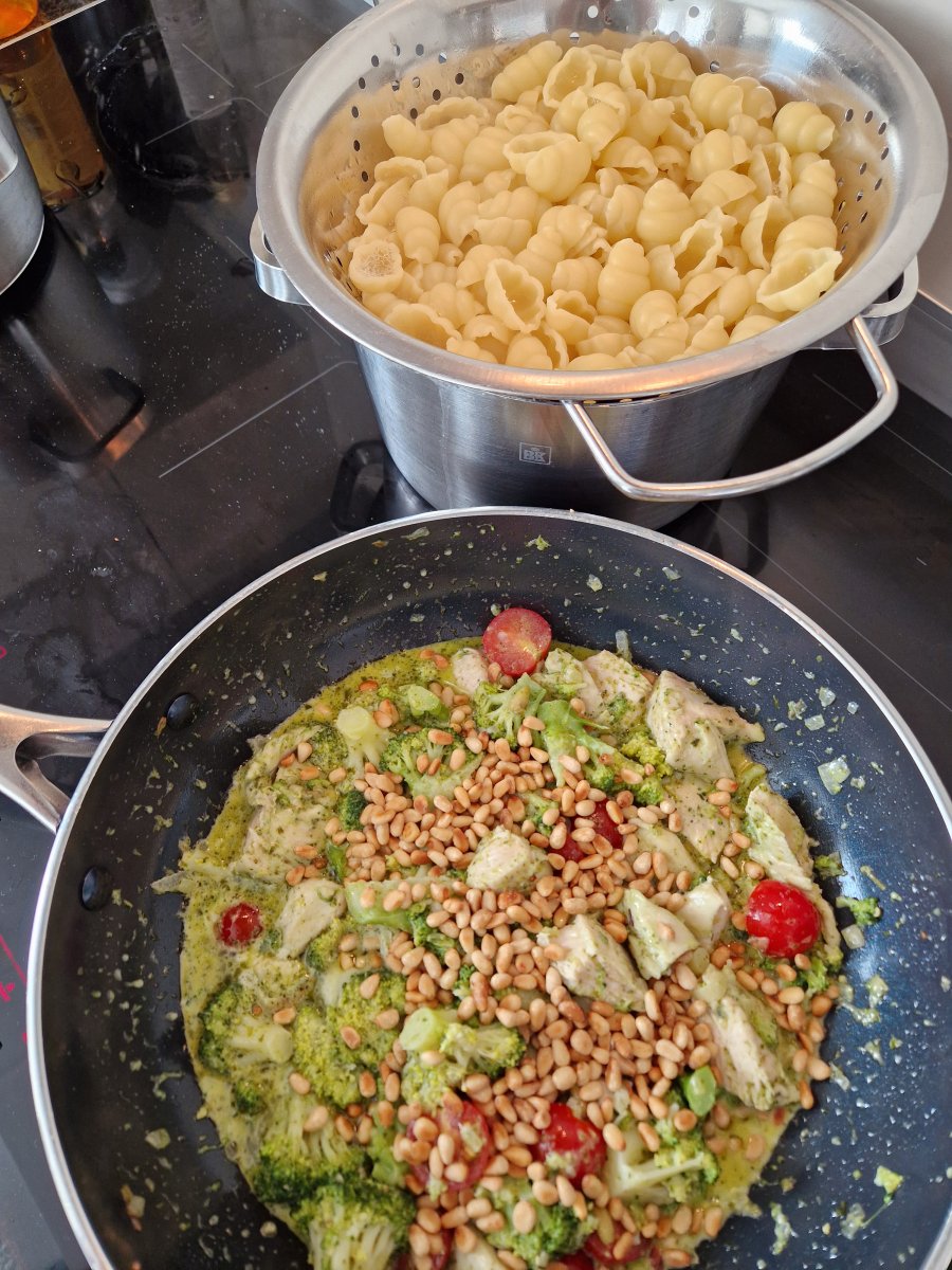 Ik kook op gevoel, niet met de weegschaal ( foei toch !!) dus het is een "ongeveer" recept en ik kan je de precieze kcal, eiwitten dus ook niet vertellen.