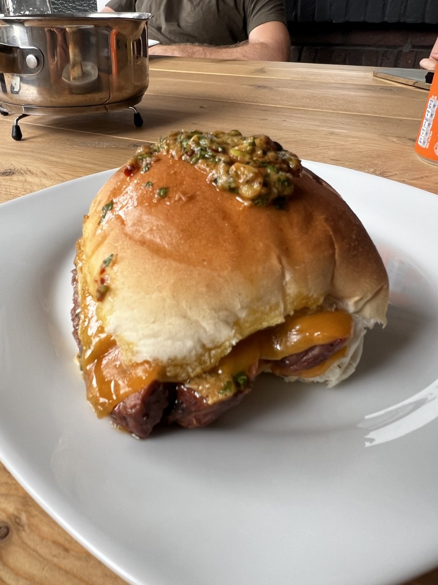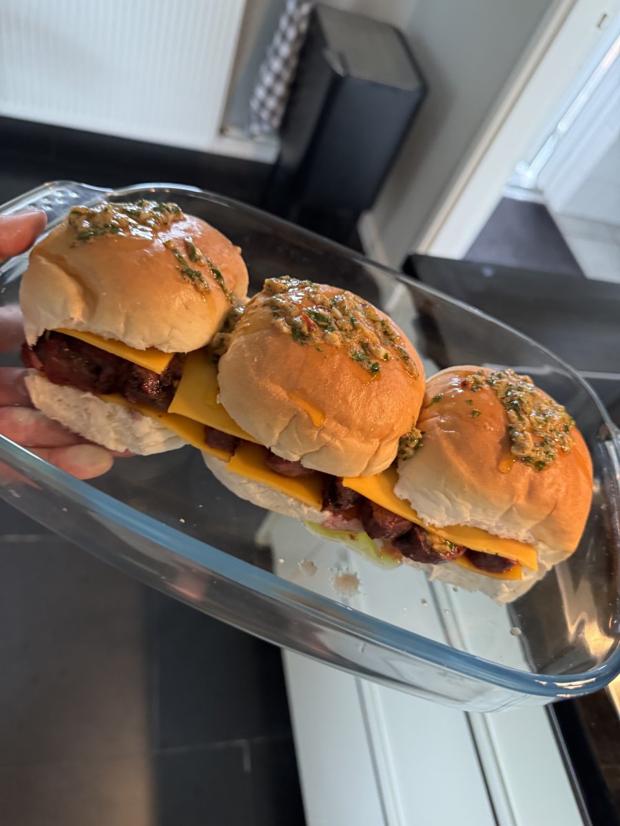 Zie ik daar kruidenboter op een hamburgerbroodje? Lekker?