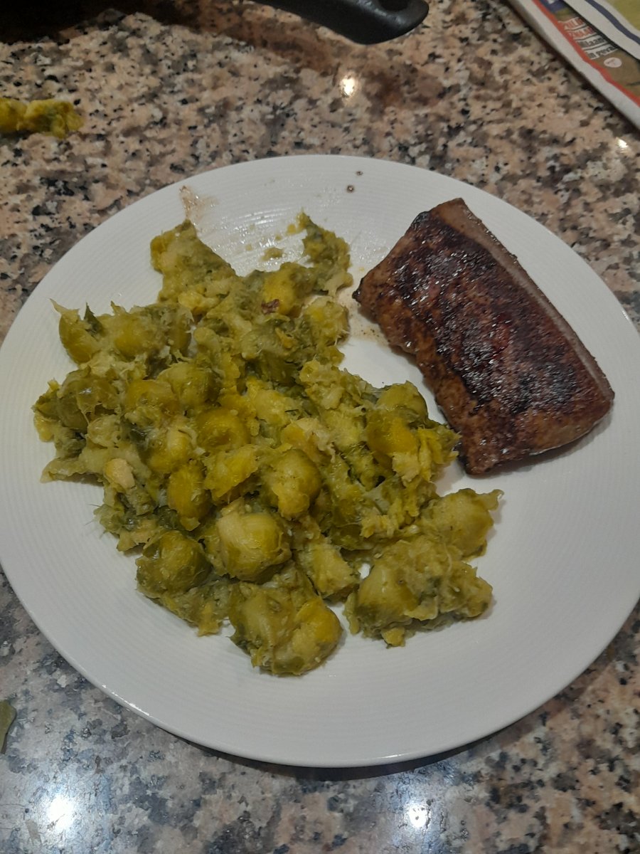 Jammer dat je ontbijt in de kiem is gesmoord. Eet smakelijk.In airfryer gebakken broodje met kipfilet en zoete mosterd. Mis de kiemgroenten, die hadden mijn dochters verdorie opgemaakt.