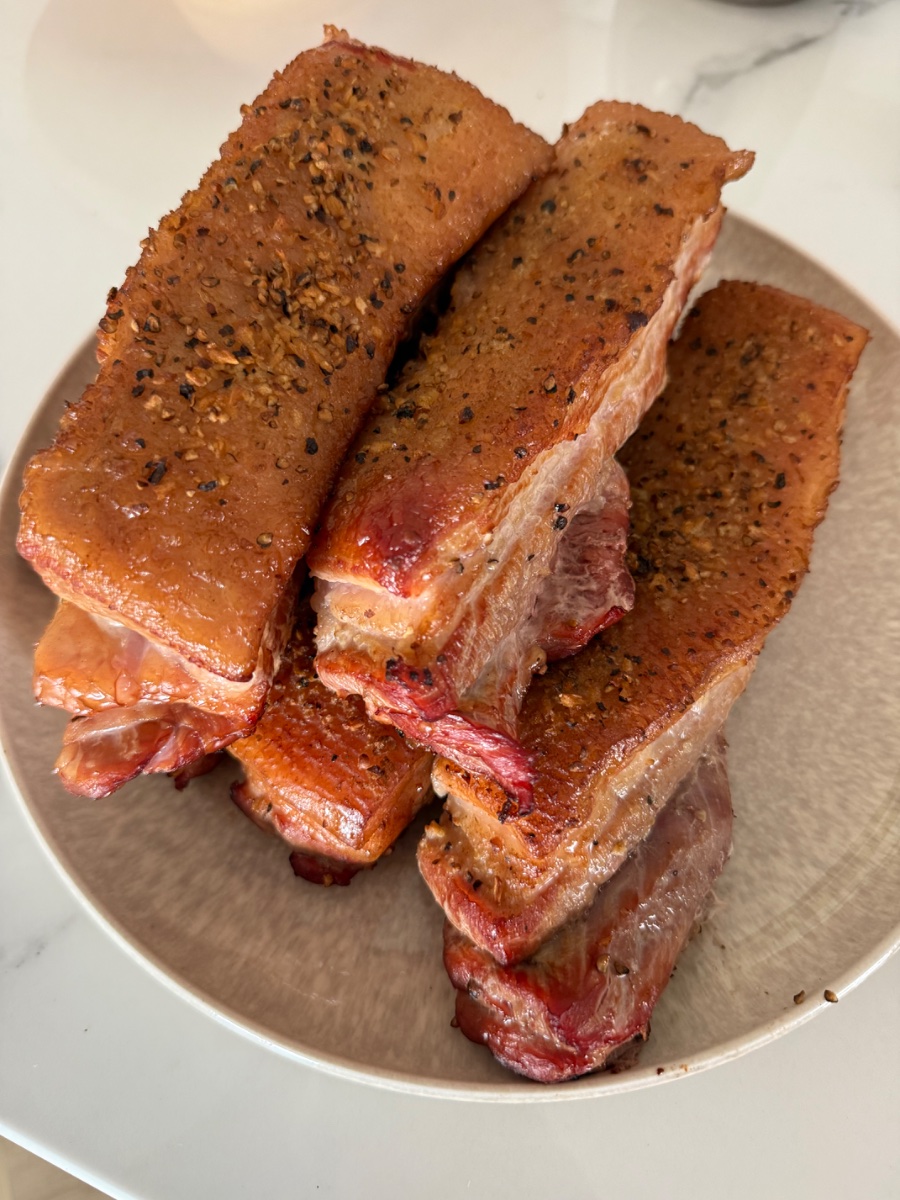Zulk soort vlees vind ik persoonlijk dus echt walgelijk 😅 Maar geniet ervan!warm gerookte buikspek, stukje voor vanavond voor bij de hutspot