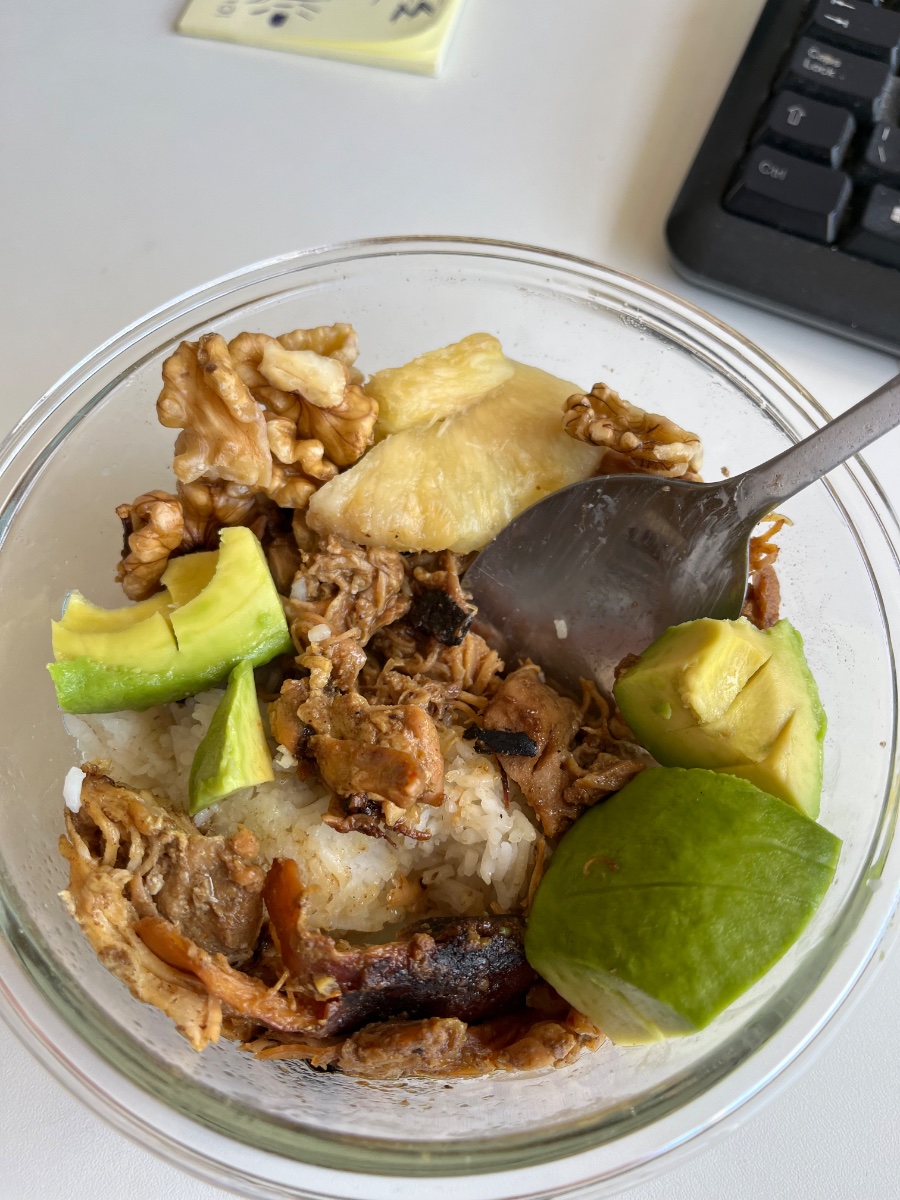 Oeh, al mijn favoriete bij elkaar, kip avocado walnoot, ananas.... Ik ga dit recept een keer bietsen 🤤Kippendij gemarineerd in de roast red pork marinade; dikke aanrader