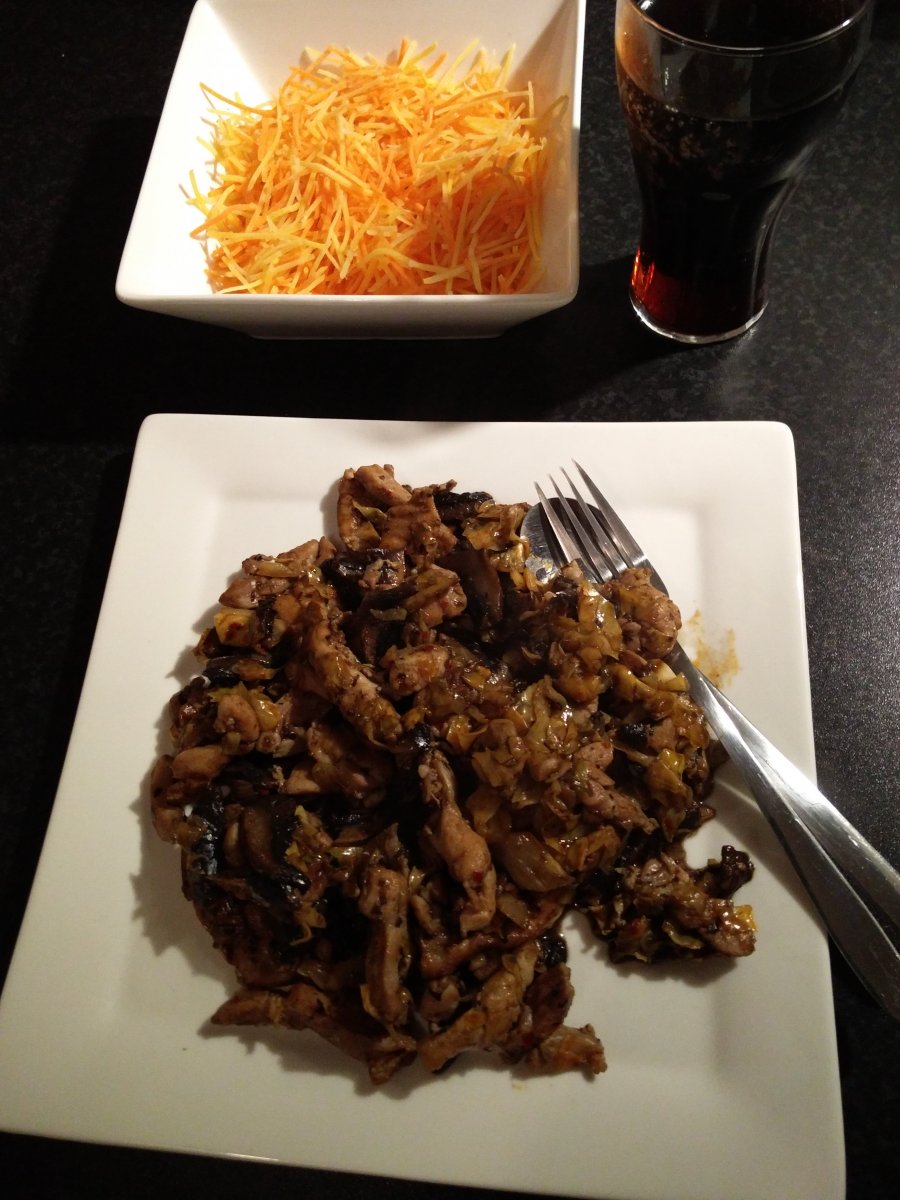 Als er dagelijks pasta + kip + groenten op het menu staat, maak ik meestal gewoon een wokje en varieer in de kruiden. Vandaag Thaise wokgroenten en Thaise kruiden (koriander, knoflook, rode peper, citroengras, laos, kurkuma etc.). Tot slot beetje ketjap, vissaus en eventueel XXL-Lightsaus voor de smaak.