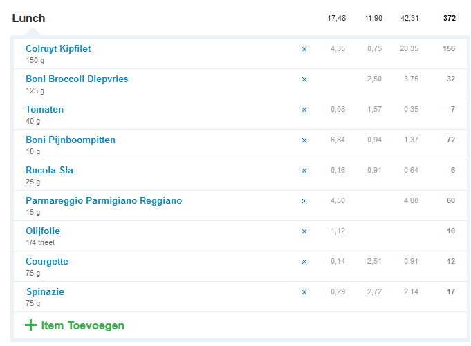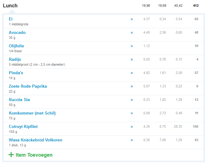 Rijst-kip-broccoli is mijn standaard lunch.