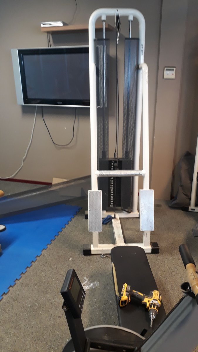 Beginsituatie is als volgt; een mooie (tweedehands) cage van powercage.nl voorzien van plate loaded pulley. Veel trainings plezier van, maar steeds schijfjes wisselen is toch jammer.