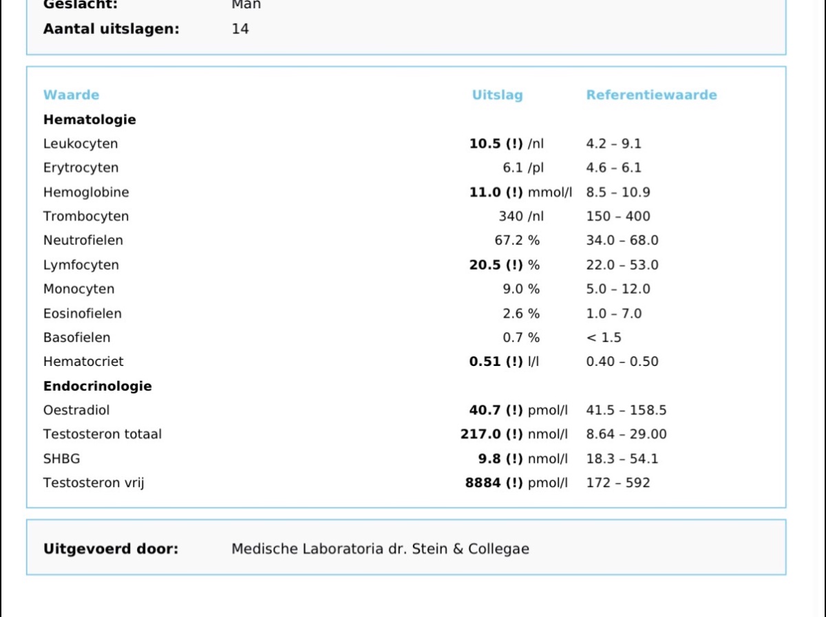 Over anderhalve week weer een bloedtest, ben benieuwd naar de uitslag.