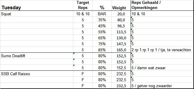 Comments: tja. Te verwachten. Net zoals vorige keer, minder dan 12u na de cardio SQ is ruk. Mijn traps en lats