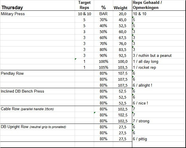 Wat stel jij voor dan? Nog een paar setjes extra op 70%, 80% erna draaien? Wel even kijken naar de rest