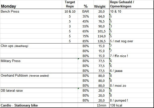 Volgens de dok zou ik maandag wel terug op de been zijn. Dus ga ik volgende week ma/di/wo/do mijn 1RM's testen.
