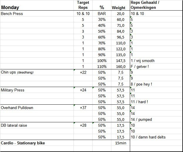 Comments: tja... niks aan te doen. Komende tijd eens kijken voor wat meer reps op +150 te pakken. Dan zal die 160
