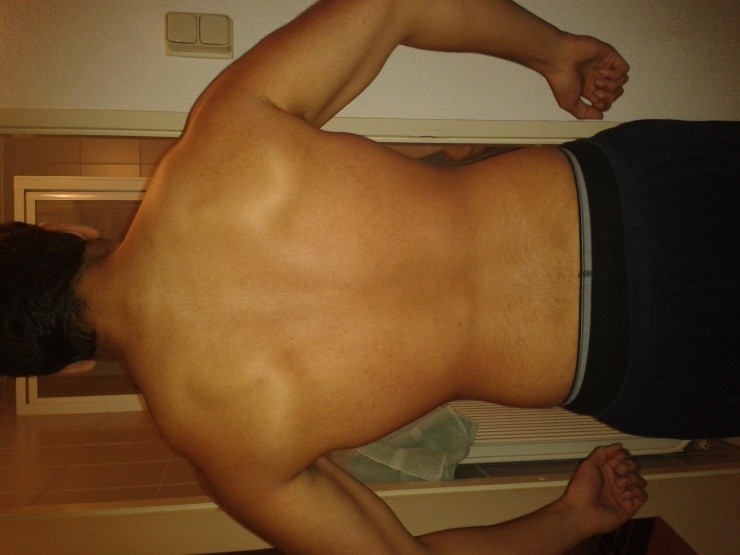 Op de pic ook niet heel goed te zien vanwege de form maar heb er aardig wat last van dat me schouderbladen naar achter steken (angel.... nog iets heette het geloof ik).