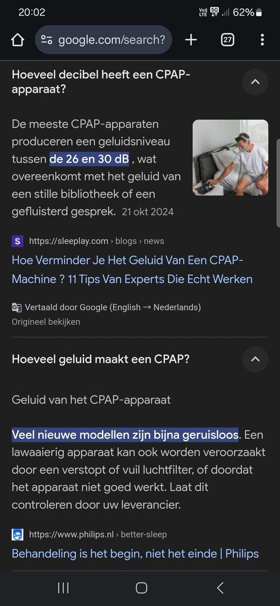 Ja inderdaad, voor m’n vrouw was het een hele verbetering. Soms fluit het een beetje als ik op m’n zij lig, maar verder is het echt stil. Voor mezelf went het niet helemaal want ik lig soms met die slurf te worstelen, maar het alternatief is mezelf kut voelen van het slaaptekort dus dat neem ik er bij.Van al degene die ik ken, heeft geen enkele partner last van lawaai vh toestel.