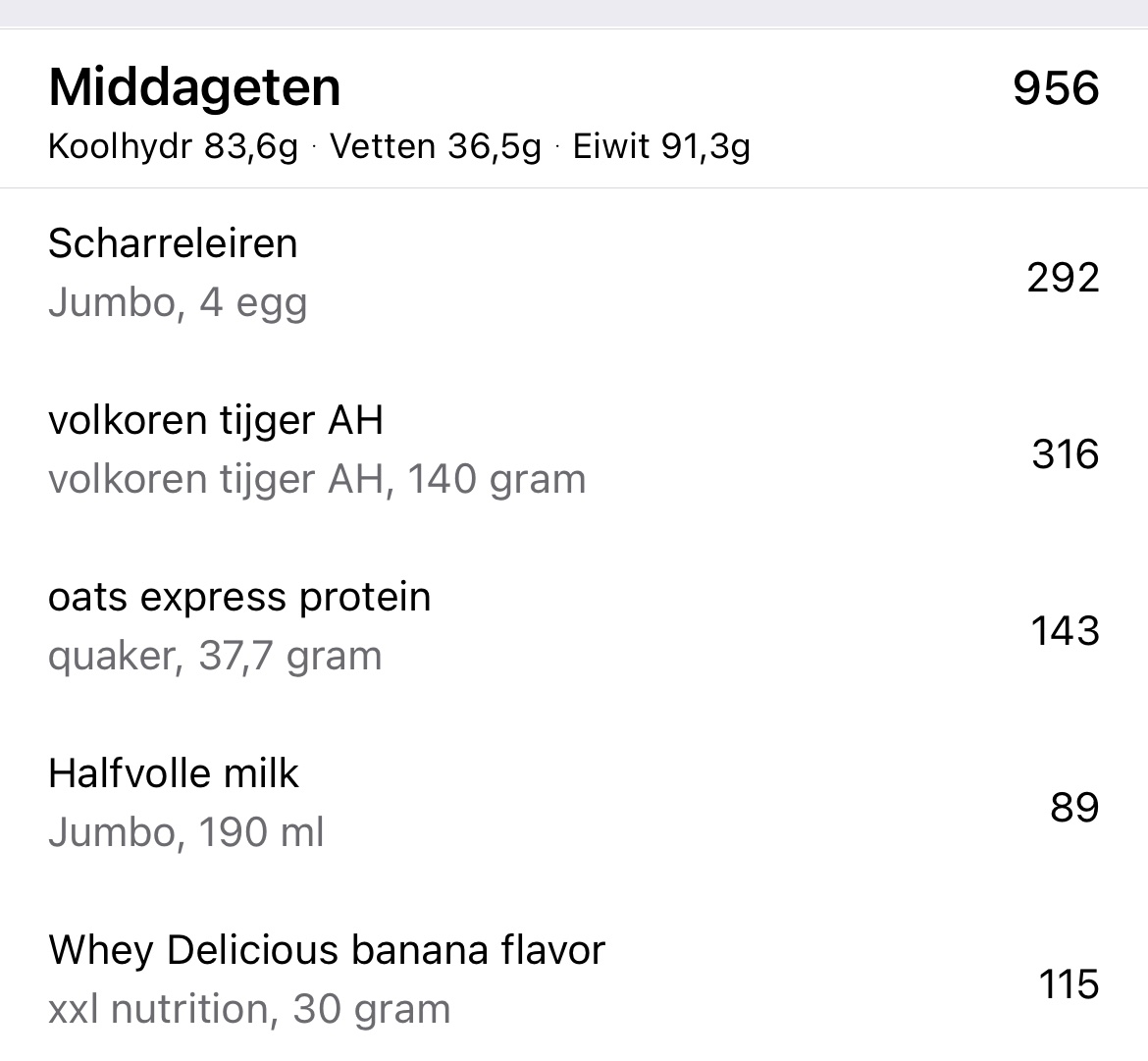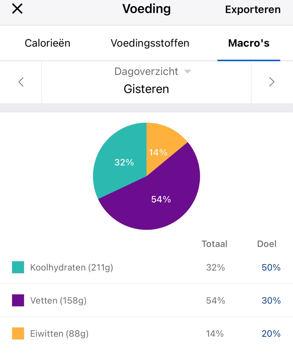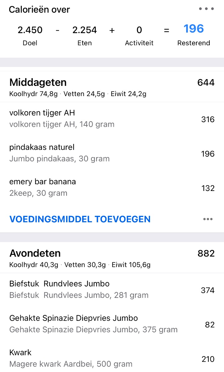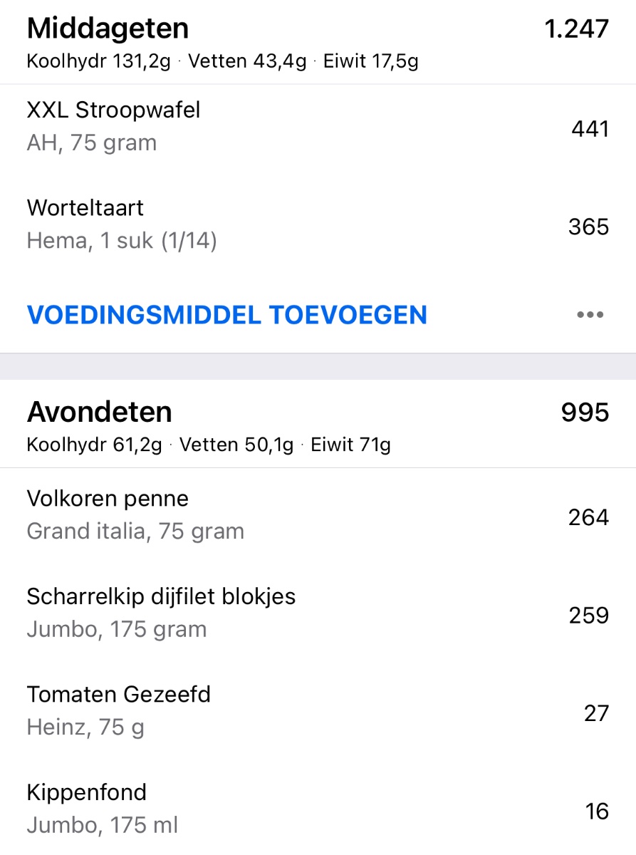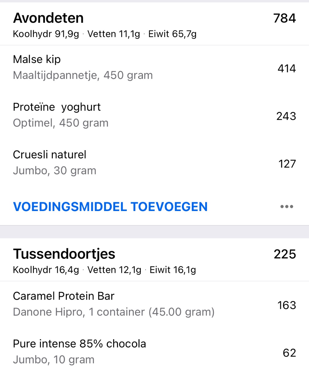 Op andere dagen waren mijn eiwitten hoog en de koolhydraten ook hoger.