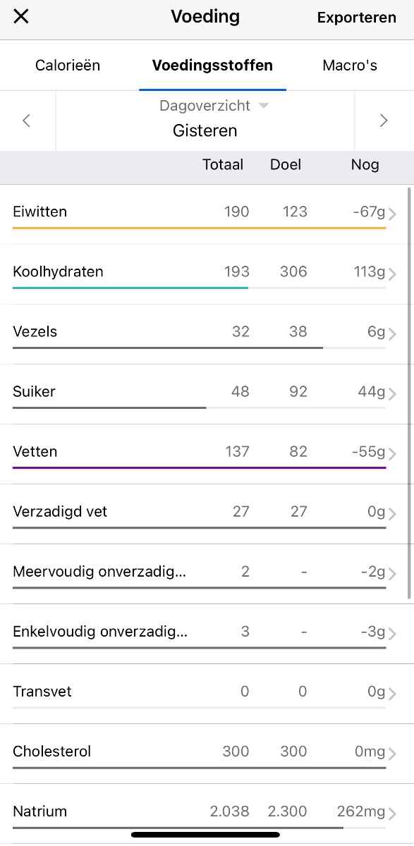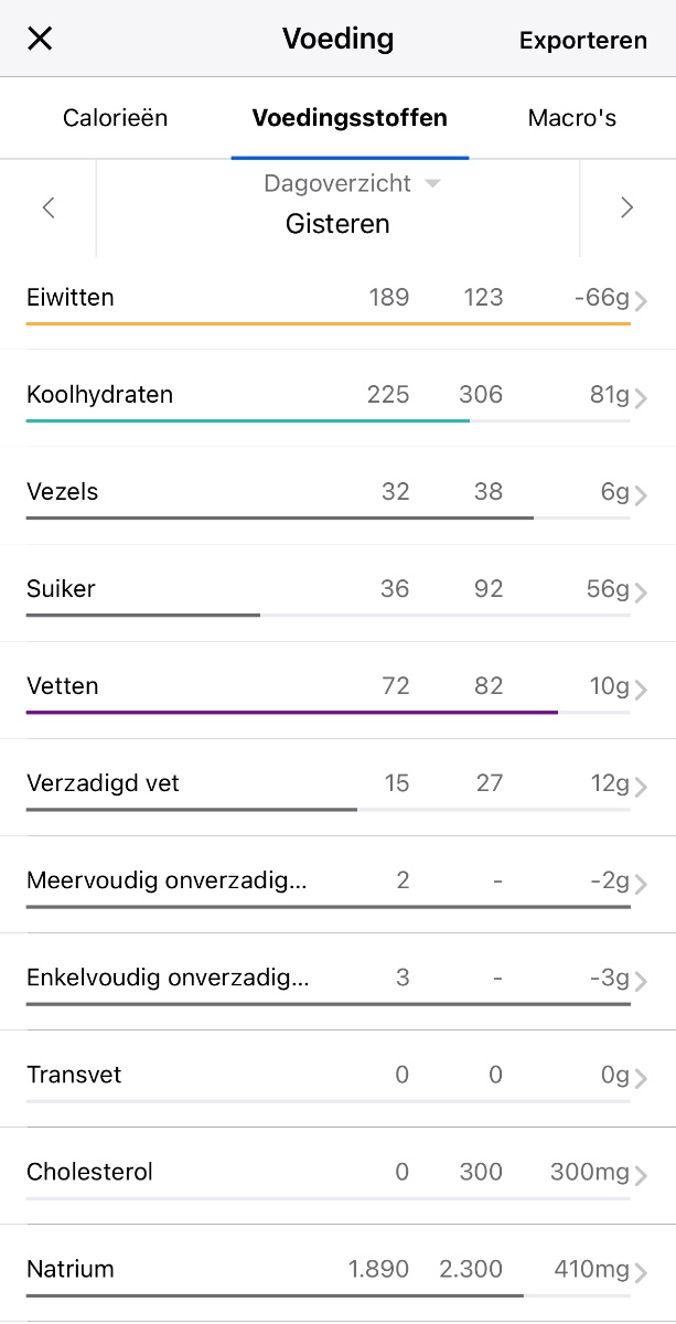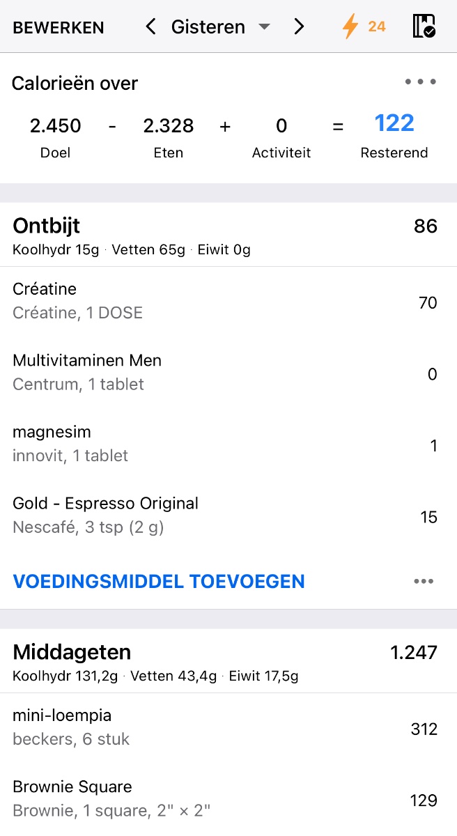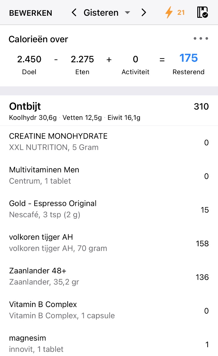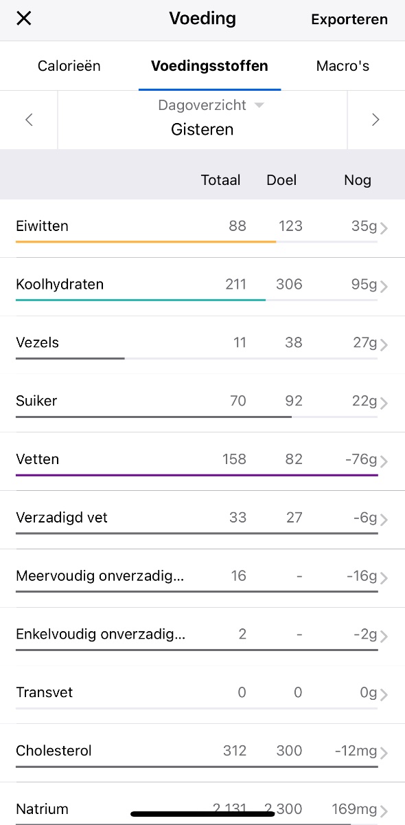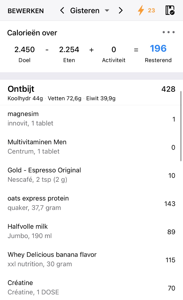 Op andere dagen waren mijn eiwitten hoog en de koolhydraten ook hoger.