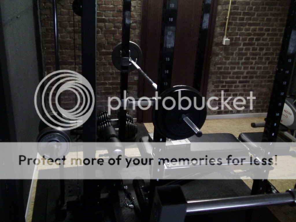 Vandaag m'n squat rack binnen gekregen. Basic line, besteld bij Fitness Seller (zelfde als die van Kroon, volgens mij, BS-252), en nog wat losse gewichten.