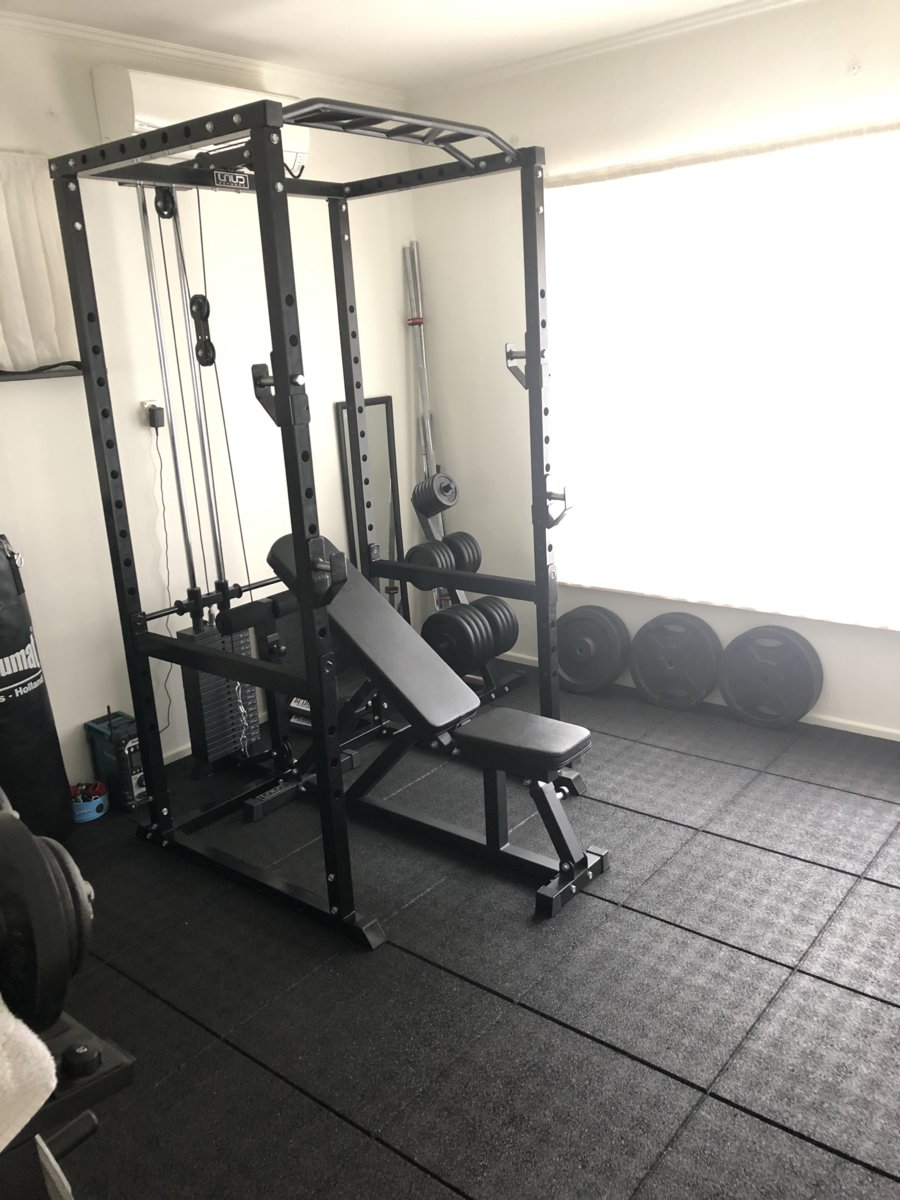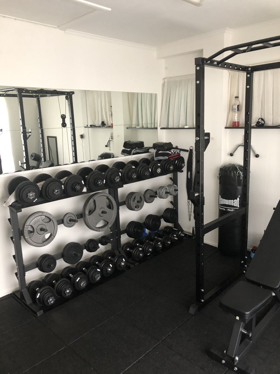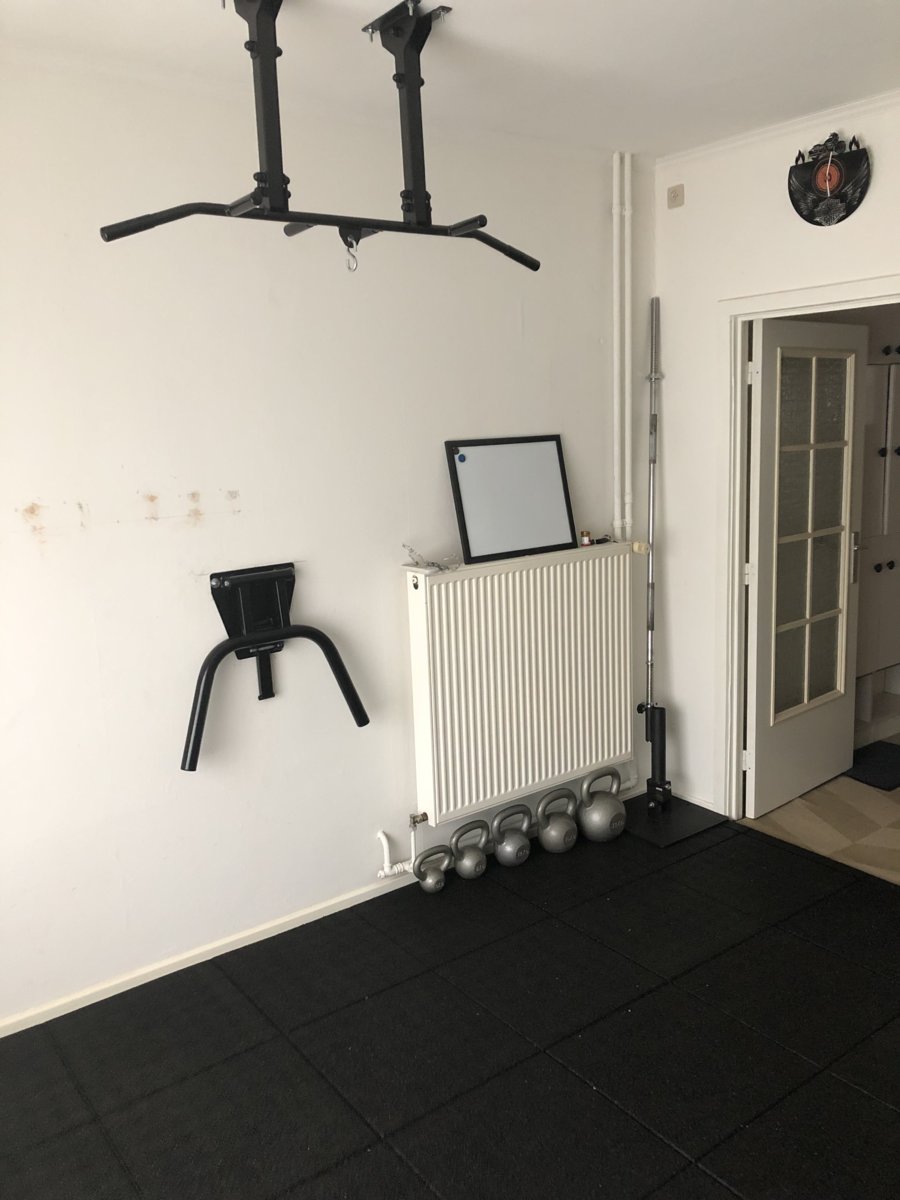 Wat een ruimte!!!! Zou het plafond alleen niet zwart maken, wordt gelijk zo donker. Kan je beter 1 muur een kleur geven (heb zelf 1 muur rood gemaakt).Aan de andere kant heb ik nog de cable cross, smith, curl bankje en wat losse spullen staan. Staat aardig vol zo maar valt prima te trainen, zelfs tot 4 personen.