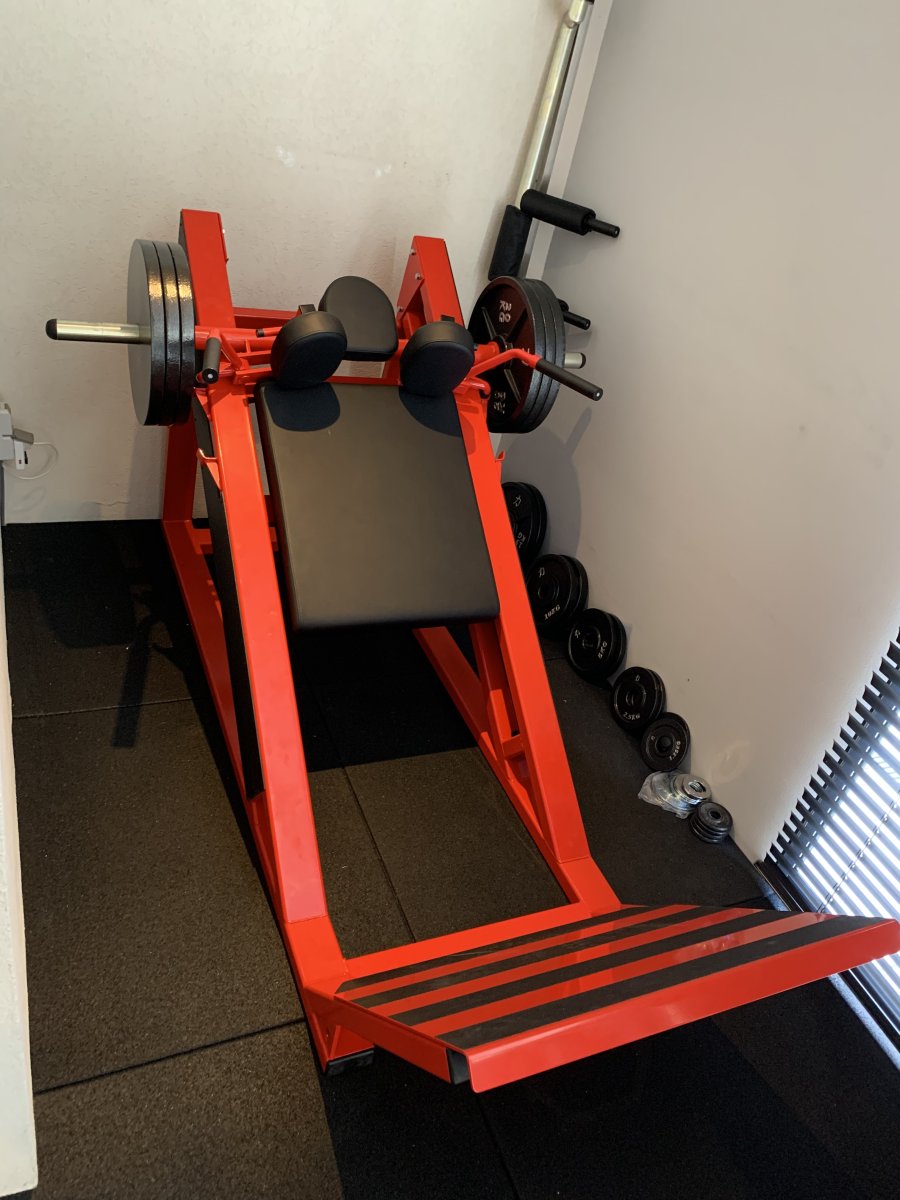 Stel.... Iemand vraagt wat zo'n hacksquat kost, hoeveel zou je zeggen?Hier de homegym ook weer wat verder uitgebreid, alles zelf gefabriceerd natuurlijk.
