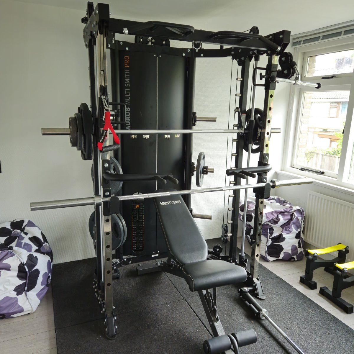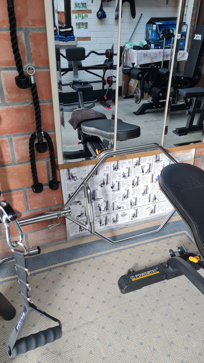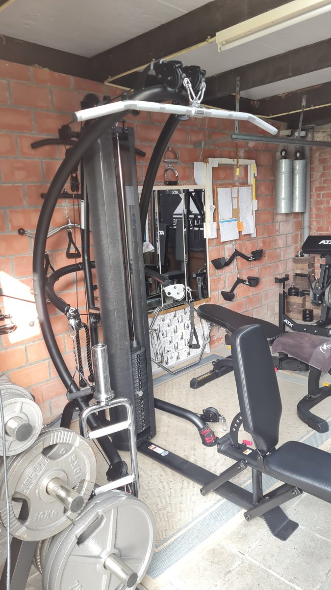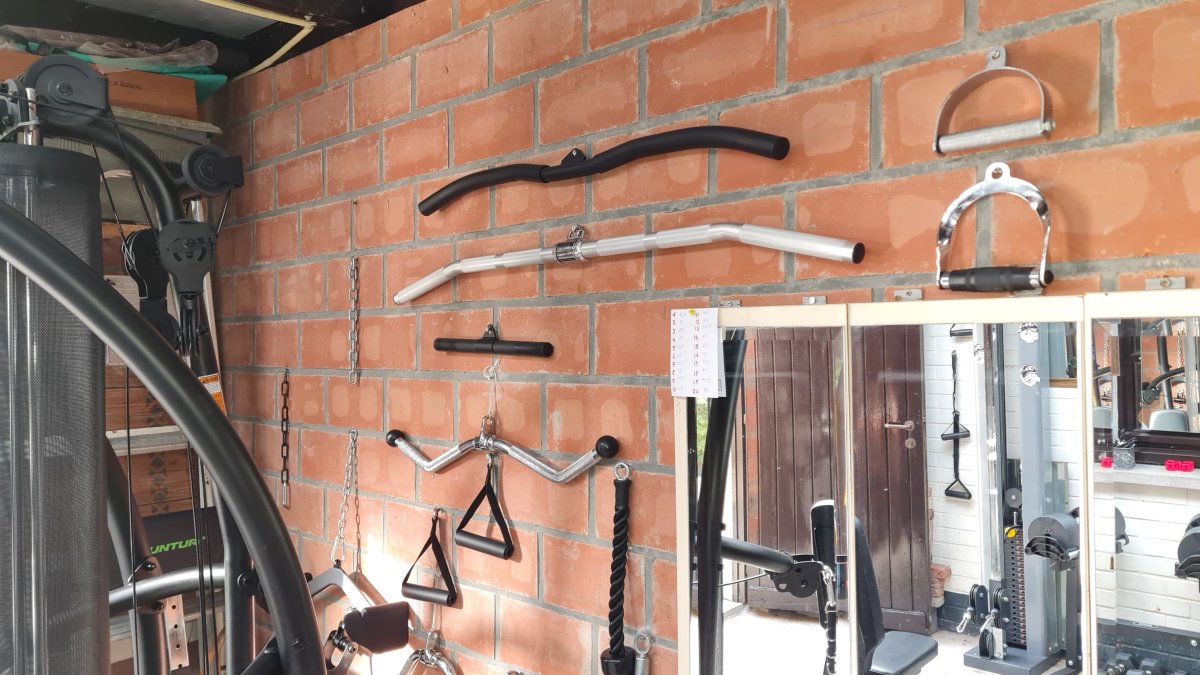 Prachtig. Zelf heb ik alleen een drukbankje, haltersteunen en een paar halters en dumbbells.Mijn Homegym. Ben 62 maar train toch een keer of 5 per week.