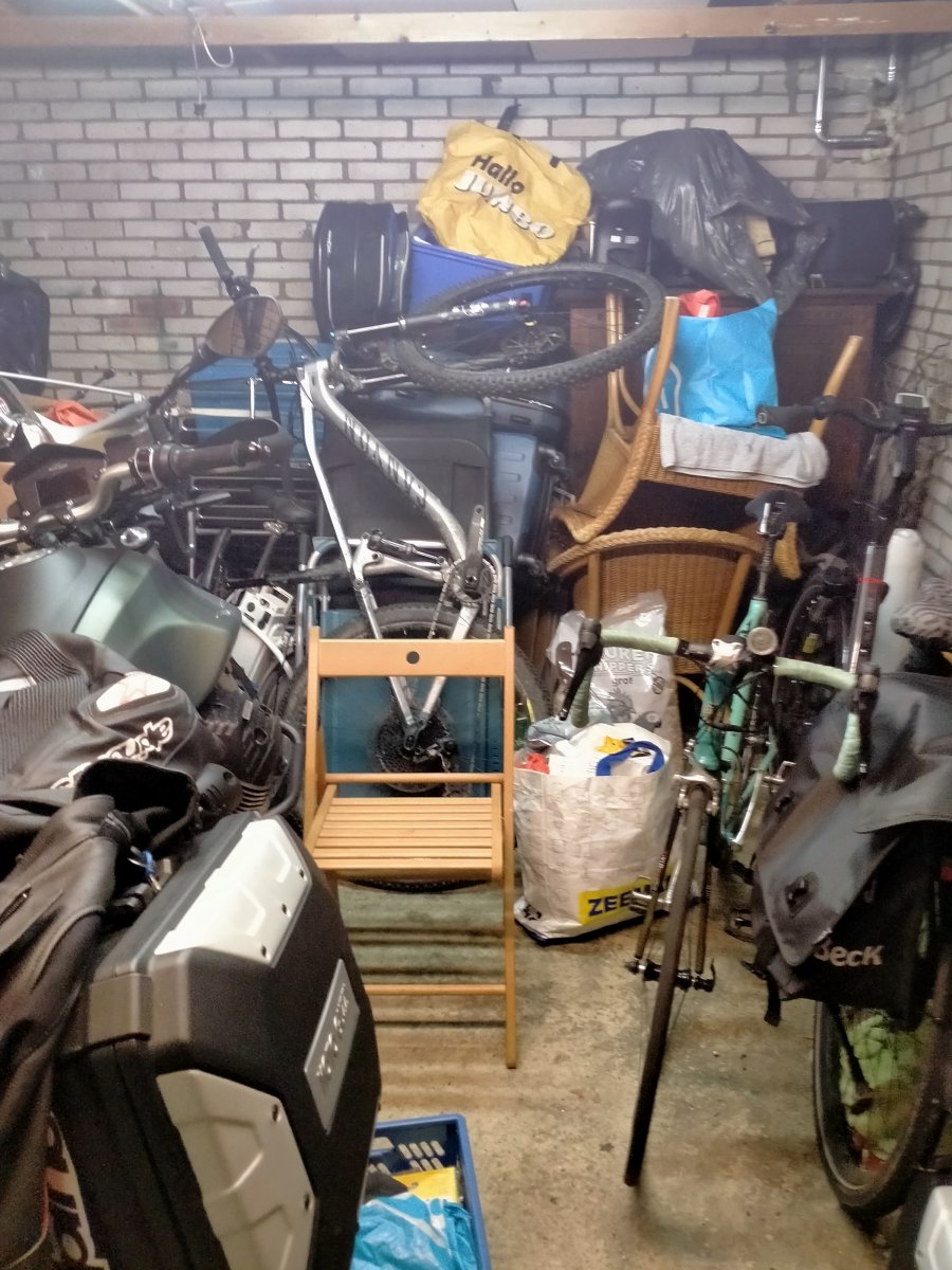 Schrik zelf van de rommel, binnenkort toch een beetje opruimen. Moet verdorie een sixpack triples leegdrinken voordat ik bij mijn motorhelm kan.