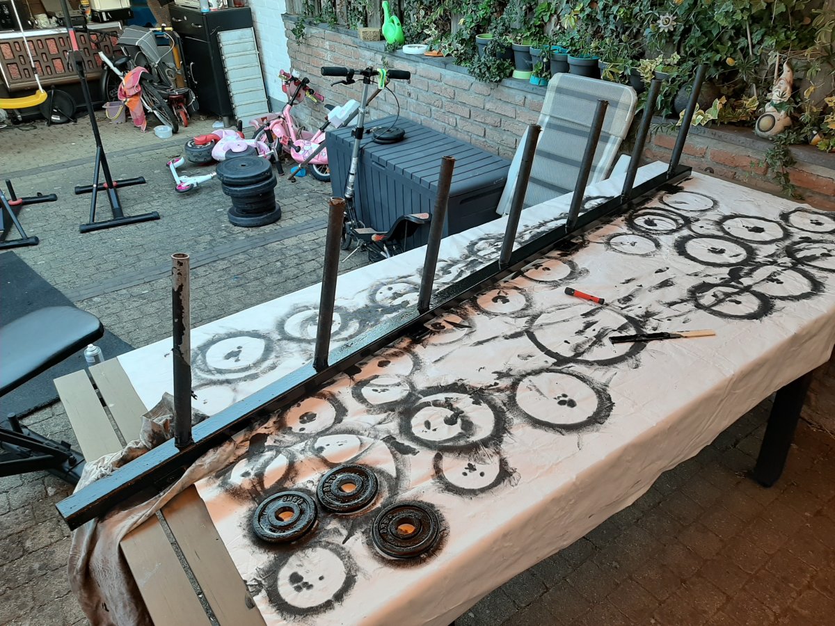 Squats met ketting 4x8, gewicht (zonder ketting gerekend) 10/20/30/40 kg