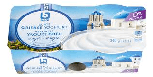 170gr Griekse yoghurt 0%, 50gr appel, 20gr bramen, 5gr pecans en 10gr 72% chocolade.