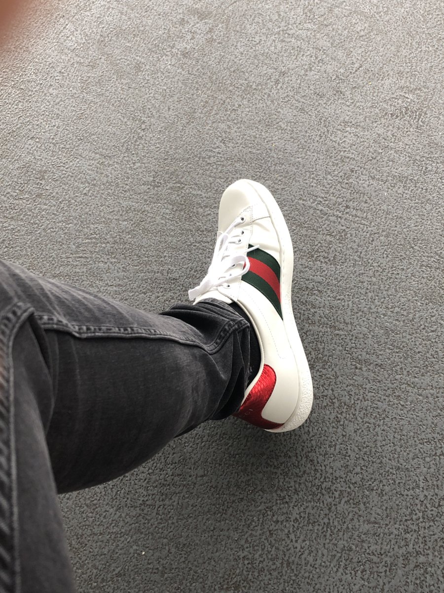 .verkapte 'kijk mij even Gucci sneakers dragen' post.