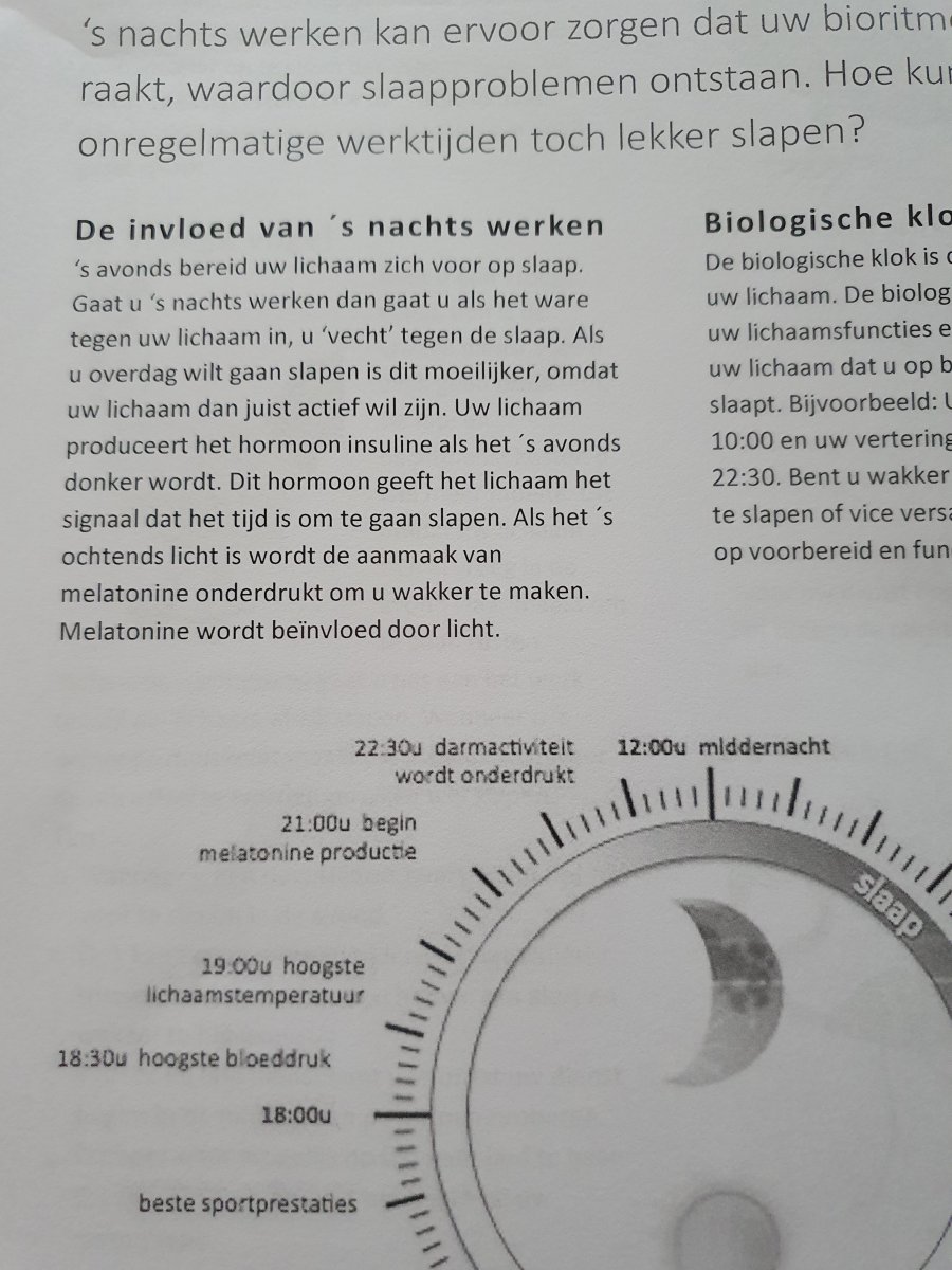 Je moet er maar tegen kunnen. Ik ging helemaal kapot aan wisselende diensten.