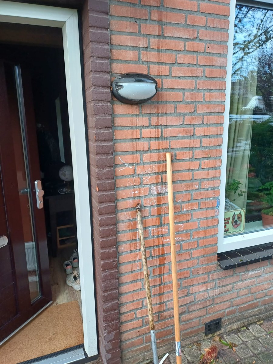 "Heey er gaat iets niet goed" komt de buurman vertellen terwijl het water uit de dakrand stroomt.