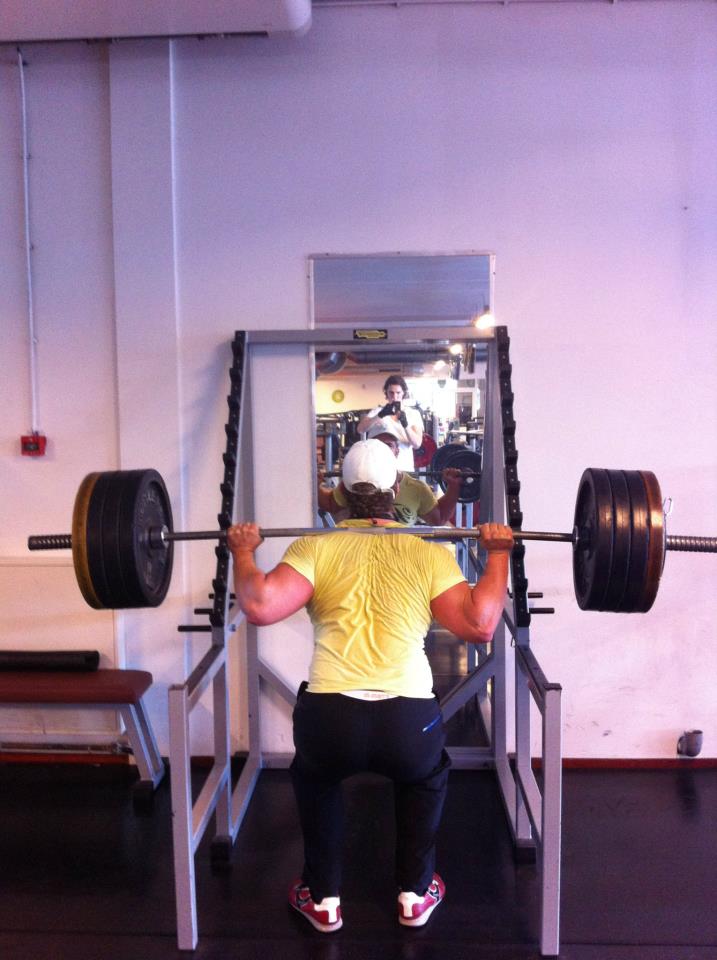 Foto van me 190 kilo squat. Jaar geleden getrokken. Inmiddels al een tijd geleden uit de broek gescheurd
