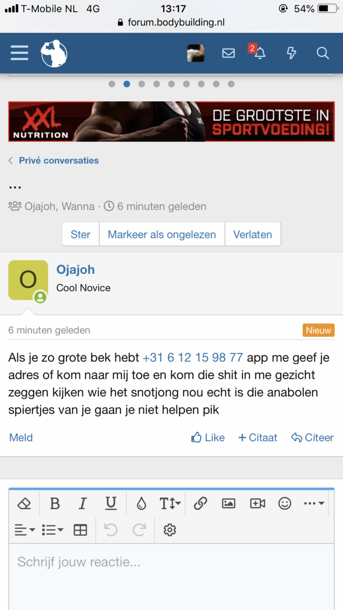 Iedereen de hele tijd lopen te irriteren kleineren pesten. Krijgt hij eindelijk wat aandacht post hij het gelijk online.Of je belt @Ojajoh op voor een date of laat dit gewoon varen. Hoeft dit hier niet openbaar te zetten inclusief telefoonnummer.