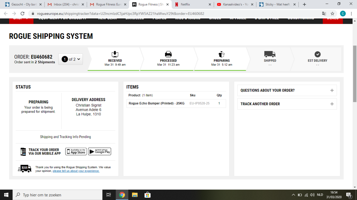 Hmmm , wel vreemd deze info: ik kocht 2 x 25 kilo (dat is in 1 set: 1 paar schijven, dus 50 kilo in totaal), maar er staat dat het in 2 shipments zal gebeuren?