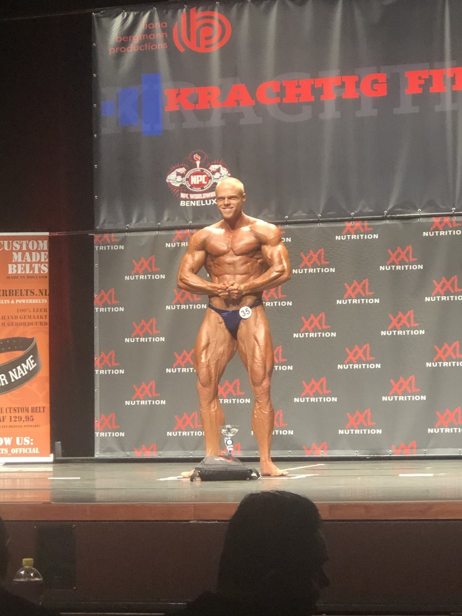 @vntl staan natuurlijk dus erna door voor Regional -102. Wist al dat Siem Goossens daar mee zou doen dus 2e plaats was het maximaal haalbare. Verder stond Dirk er natuurlijk, een buffel van een atleet van Aron Winnelinckx en nog 2 atleten. Vergelijkingen duurde super lang. Er werd constant gewisseld en poses moesten steeds opnieuw. Maar ik mocht steeds in het midden blijven naast Siem dus een goed teken. Direct erna de routine en prijsuitreiking. Hier werd Dirk 3e, ik 2e en Siem uiteraard 1e. Siem zei me backstage dat hij hem kneep omdat ik er zo hard bij stond en hij wat minder. Zo zie je maar weer dat zelfs de beste atleten nog onzeker kunnen zijn.