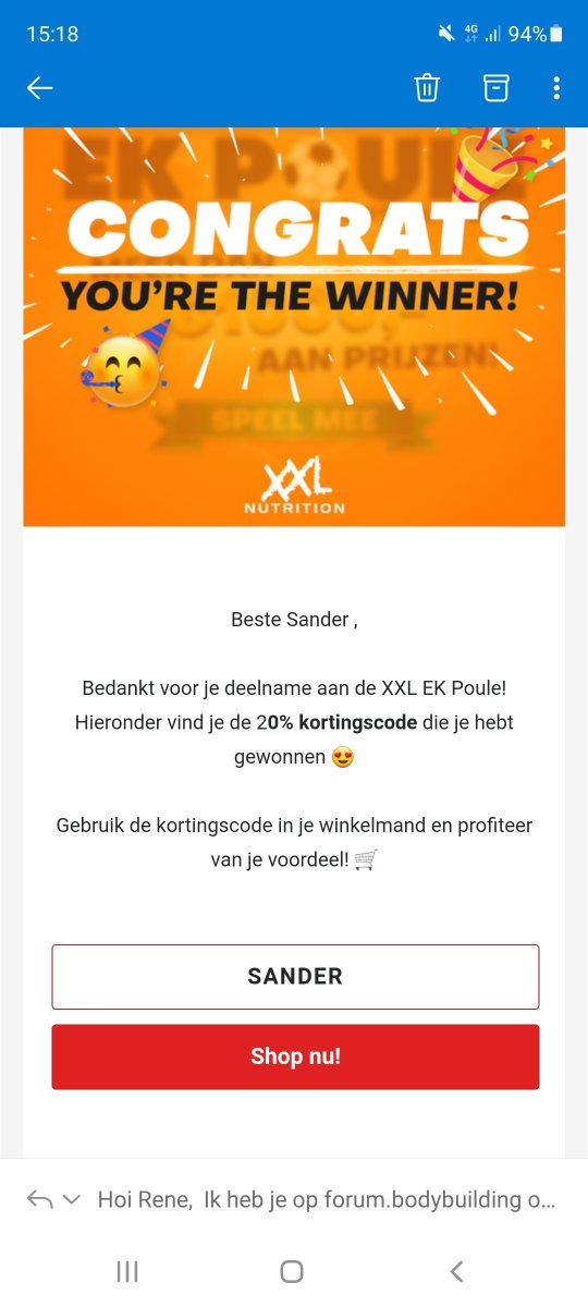 Ik heb geen idee of dit vaak gebeurt (ben nog op vakantie), maar hoort niet. Woon je in NL? ik stuur je even een coupon daarna via een PM.@XXL Nutrition René, heb praktisch nog nooit probleem gehad met een product van je huismerk maar de xxl portemonee's zijn op bepaald gebied wel niet sterk, slechte batch of heb ik gewoon pech gehad met deze ?
